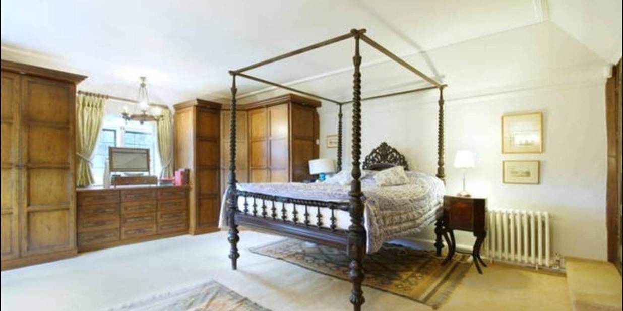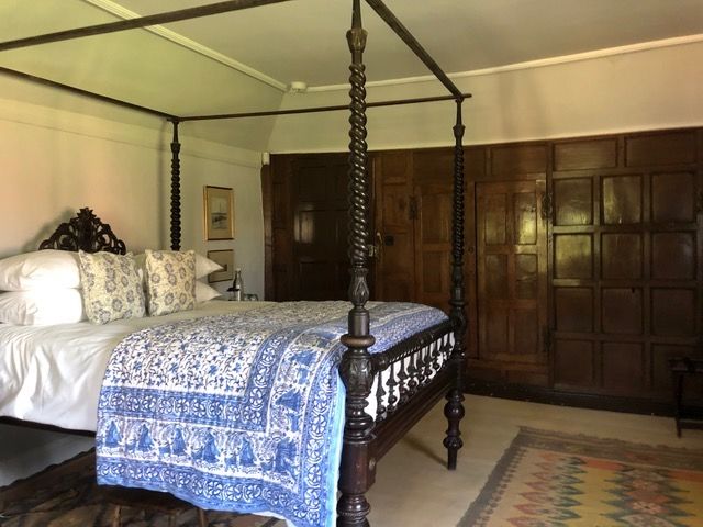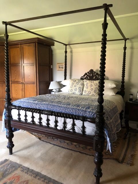 This King bedroom, in the most ancient part of the house (dating from the 1390's!) features an Anglo-Indian 1850's four-poster, Georgian and late 17th century antiques (including a rare and beautiful 18th century lacquered Chinese chest) and sumptuous jacuzzi bathroom with slate floor and washbasins. It even has an illuminated coat of arms of the Wingate family, owners for some 450 years!