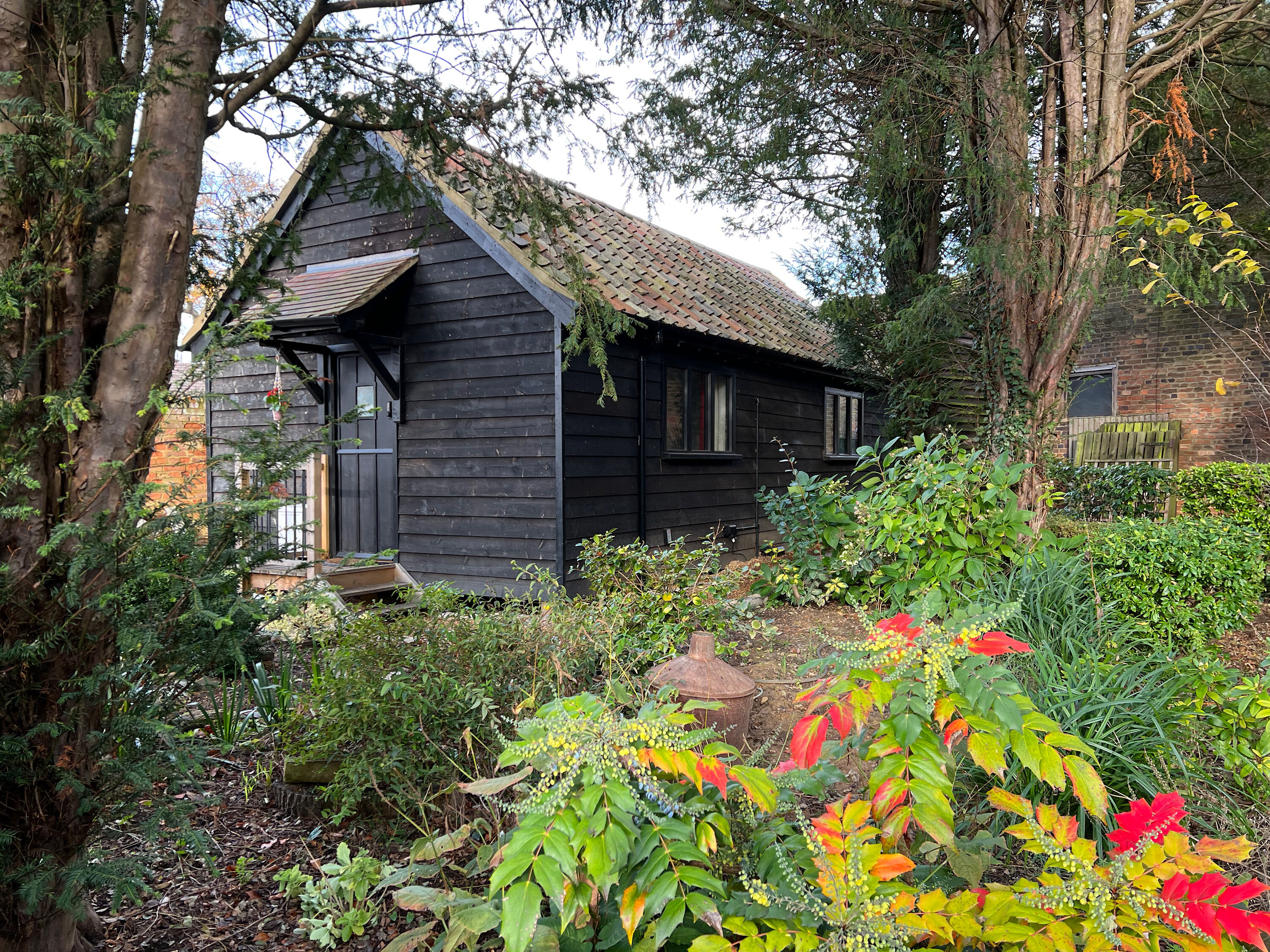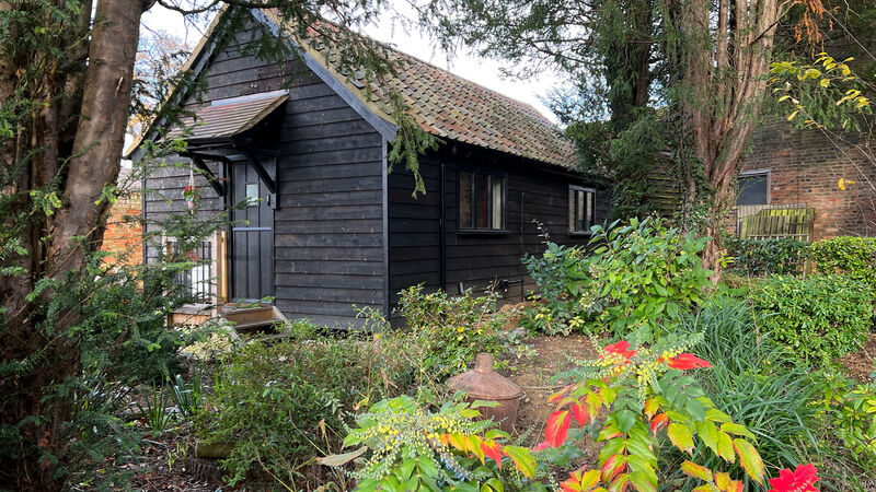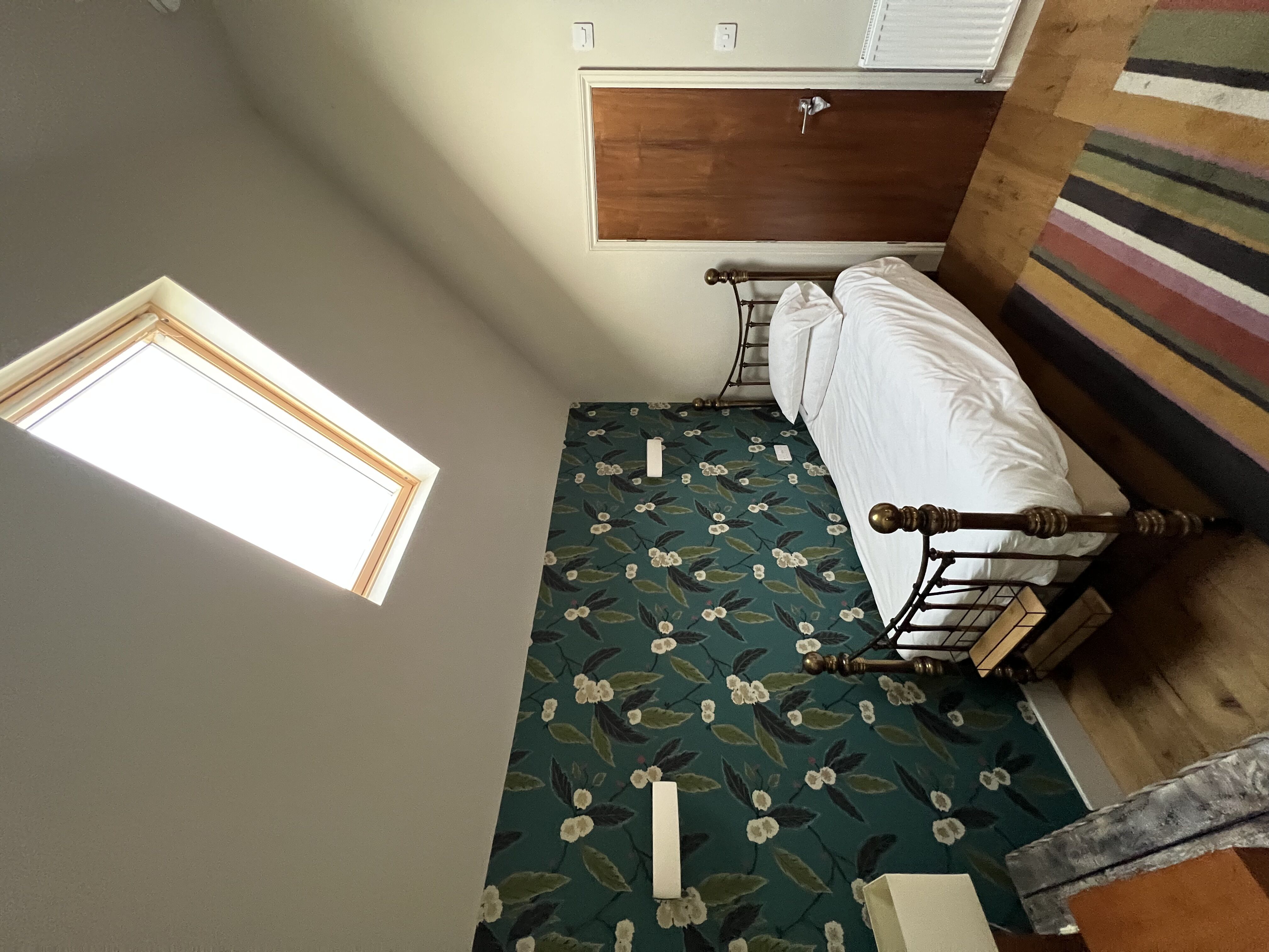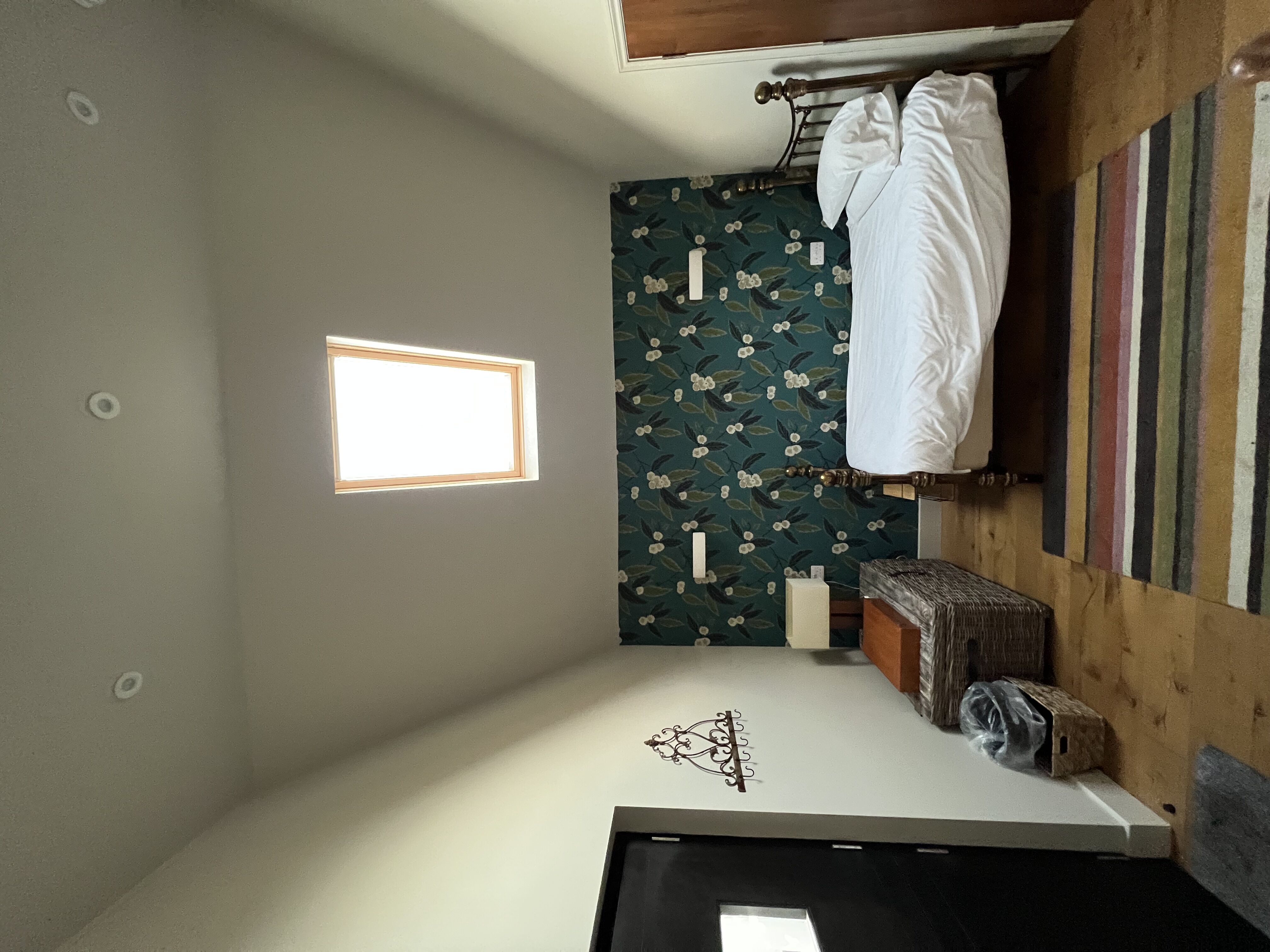 Views can be had from the doorway over open countryside. The window allows views over the garden and the wooded area adjacent to the room. There is a paved seating area adjacent to the room. The room has a brass bed with a high-quality mattress. It has a shower room, central heating, Wi-Fi and a hanging rail.